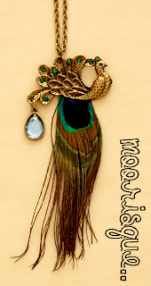 Item Code: N04 Antique Brass Peacock necklace with feathers Price : 22 Length: 41cm (middle of the chest) SOLD Labels: necklace |